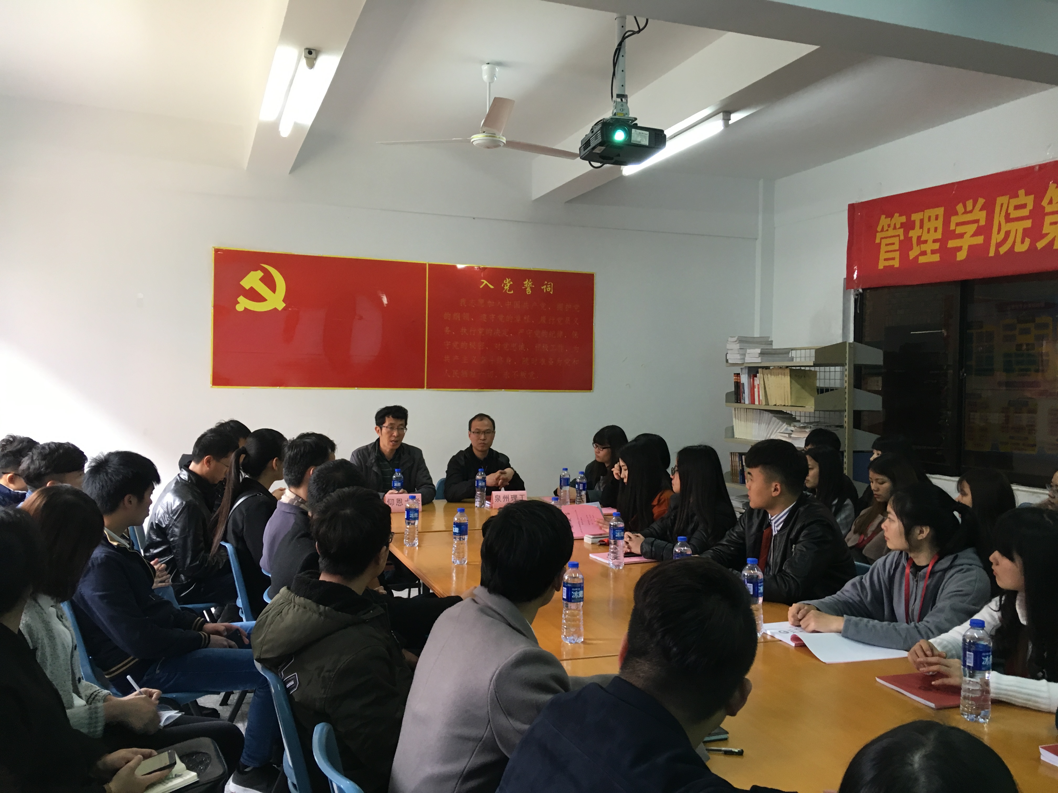 3月11日上午,由泉州理工职业学院商学院党总支书记陈荣惠带队的30余人师生代表一行走进仰恩与我院开展交流活动。我院党总支书记兼常务副院长许惠铭以及Beat365唯一官方网站团委书记,各系辅导员,团委学生会干部、专业协会代表们参加了本次交流会。