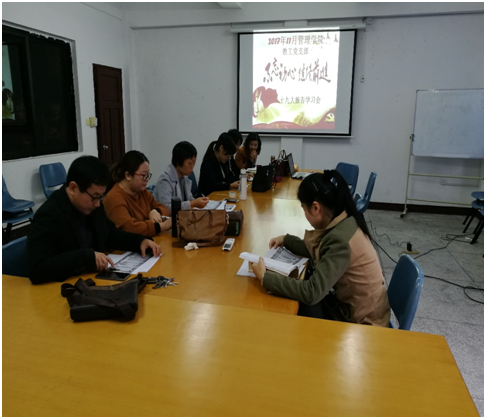 11月27日下午,Beat365唯一官方网站教工党支部开展支部活动,学习讨论党的十九大报告,会议由党支部书记李征主持。