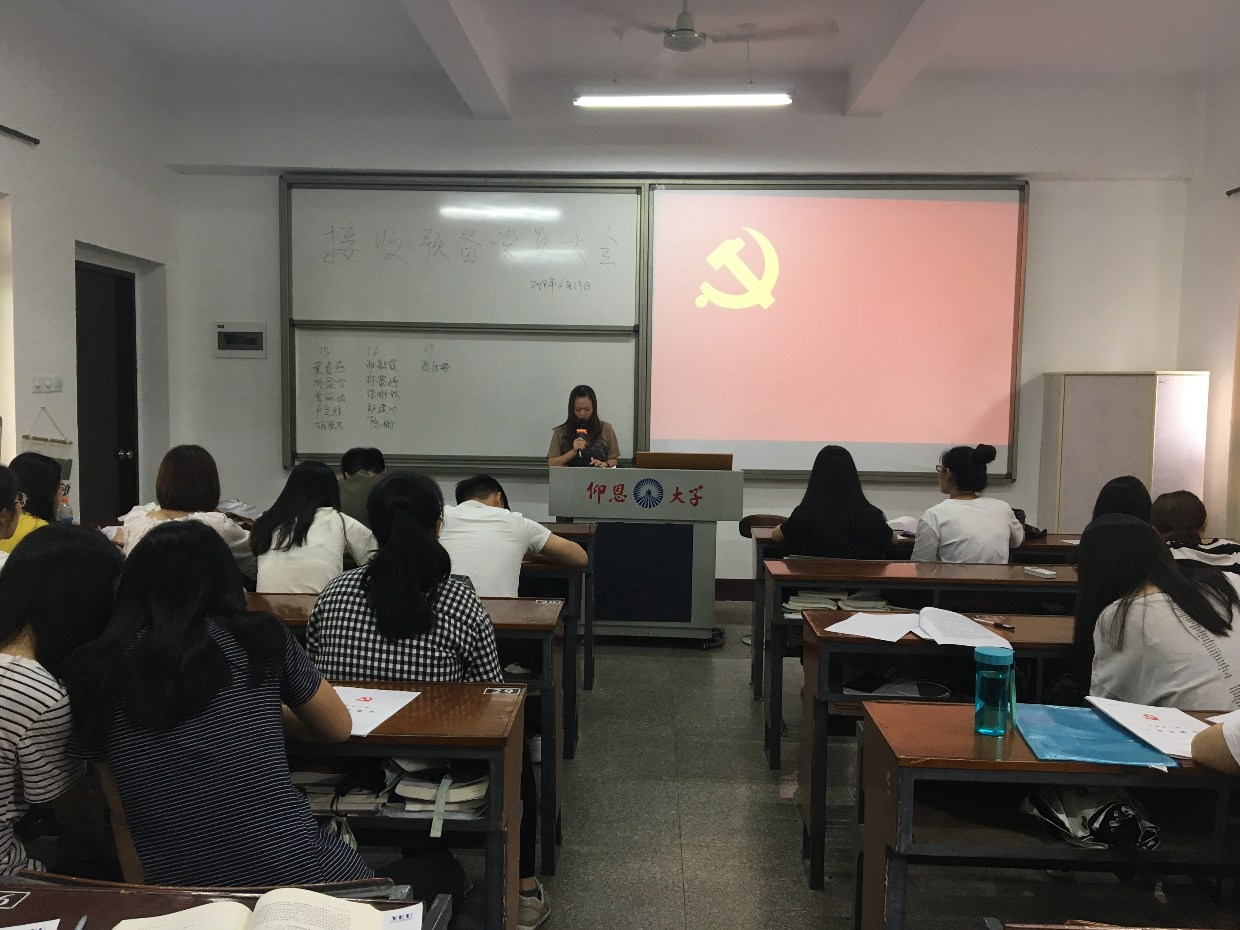 6月13日下午15:00,预备党员接收大会在共和楼312顺利召开,物流管理系全体党员、发展对象及群众代表参加了本次大会。本次大会由物流管理系学生党支部书记张梦媚老师主持,对发展对象进一步考量并且按照党员的标准严格接收。最后,曾丽娟、林黎婷、陈乐梅等10位发展对象顺利成为预备党员。