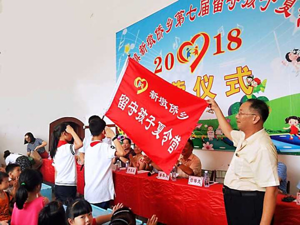 开营仪式上,江口镇党委书记曾曙光给夏令营授旗。莆田市计生协会为各年级小朋友发放了礼物。