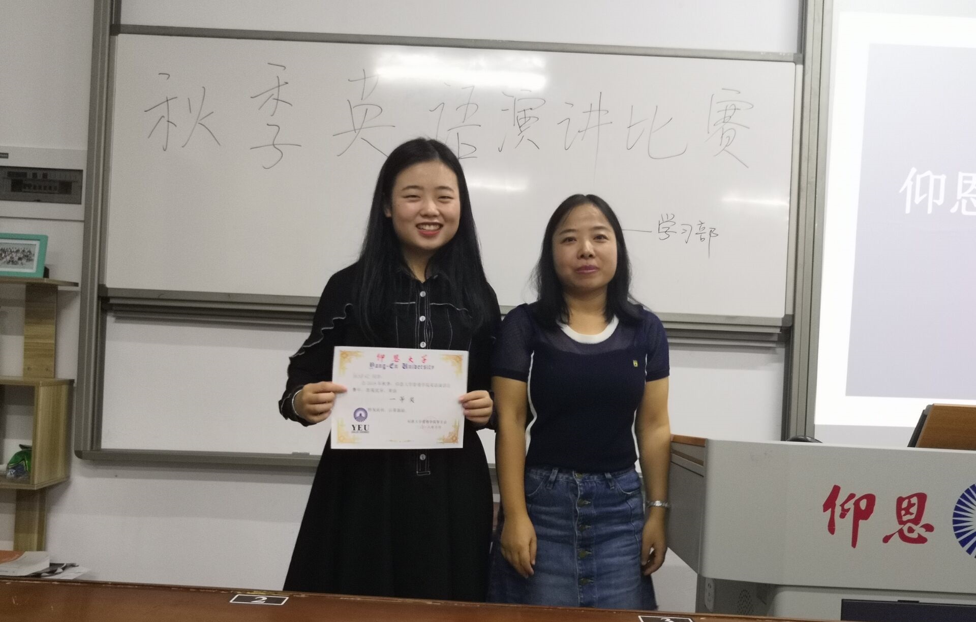 张烨玲荣获一等奖 本次比赛给同学们提供了展现才能的机会,充分展示我院学子的风采,同时也有助于营造我院良好的英语学习氛围,调动广大学生学习英语的积极性。(黄晓珍、杜心田/文 林凤仙/图)
