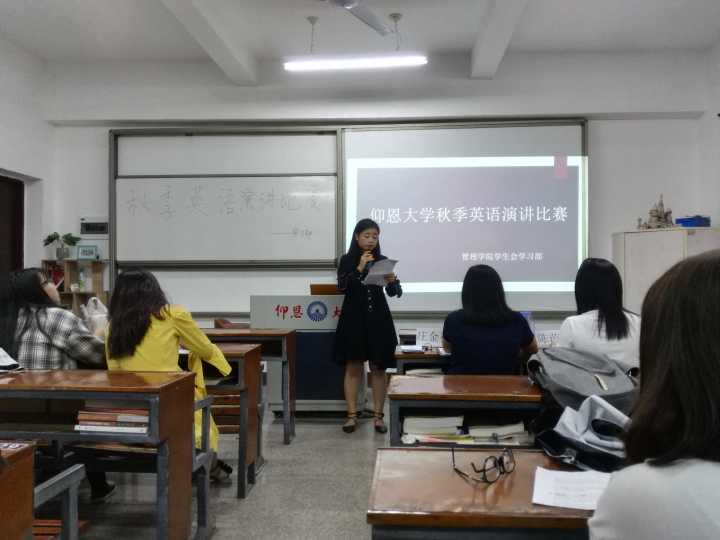 为了激发广大同学学习英语的热情,提高同学们对英语口语的兴趣,营造英语学习氛围,10月10日晚,由我院学生会举办的英语演讲比赛(学院初赛)在第一教学区共和楼320上演,担任本次比赛的评委有外国语学院陈苗苗老师和庄金英老师。