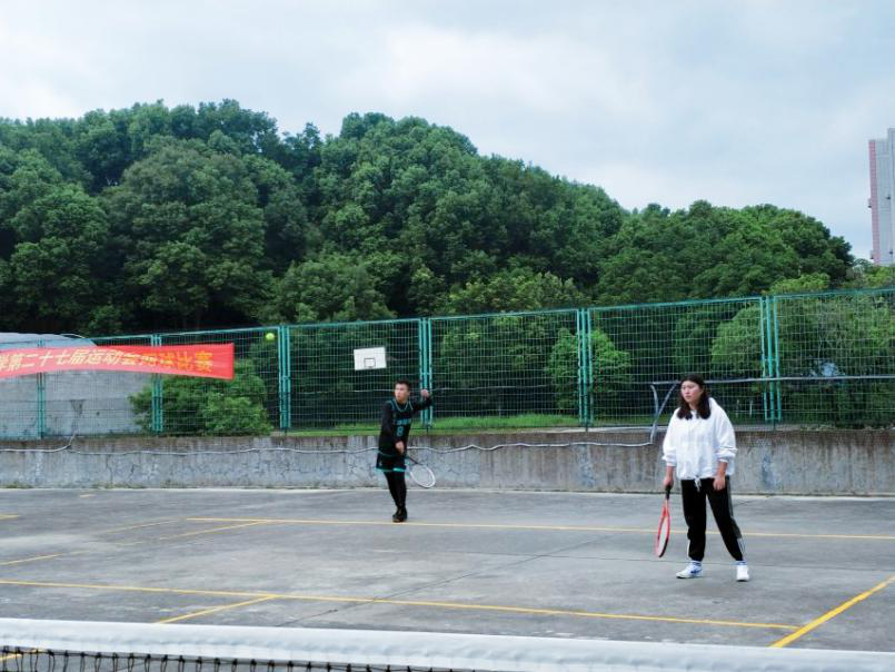 男女混合双打 本次校运会网球赛包括男子单打、女子单打、混合双打比赛。比赛中,工商管理系网球代表队的运动员们奋力挥拍搏击,汗水伴随着骄阳在赛场上尽情挥洒,喝彩声、加油声更是响彻整个赛场。