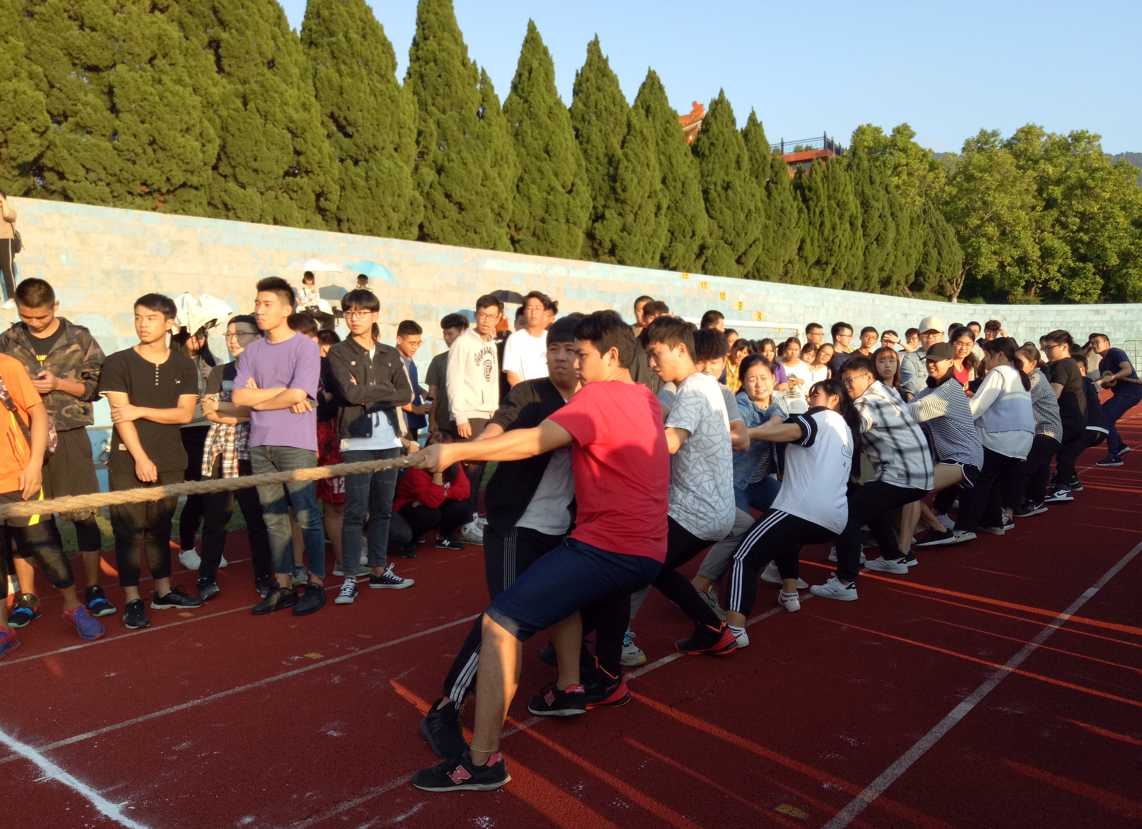 11月5日下午,Beat365唯一官方网站第二十七届校运会拔河比赛在第一教学区仰基场举行。