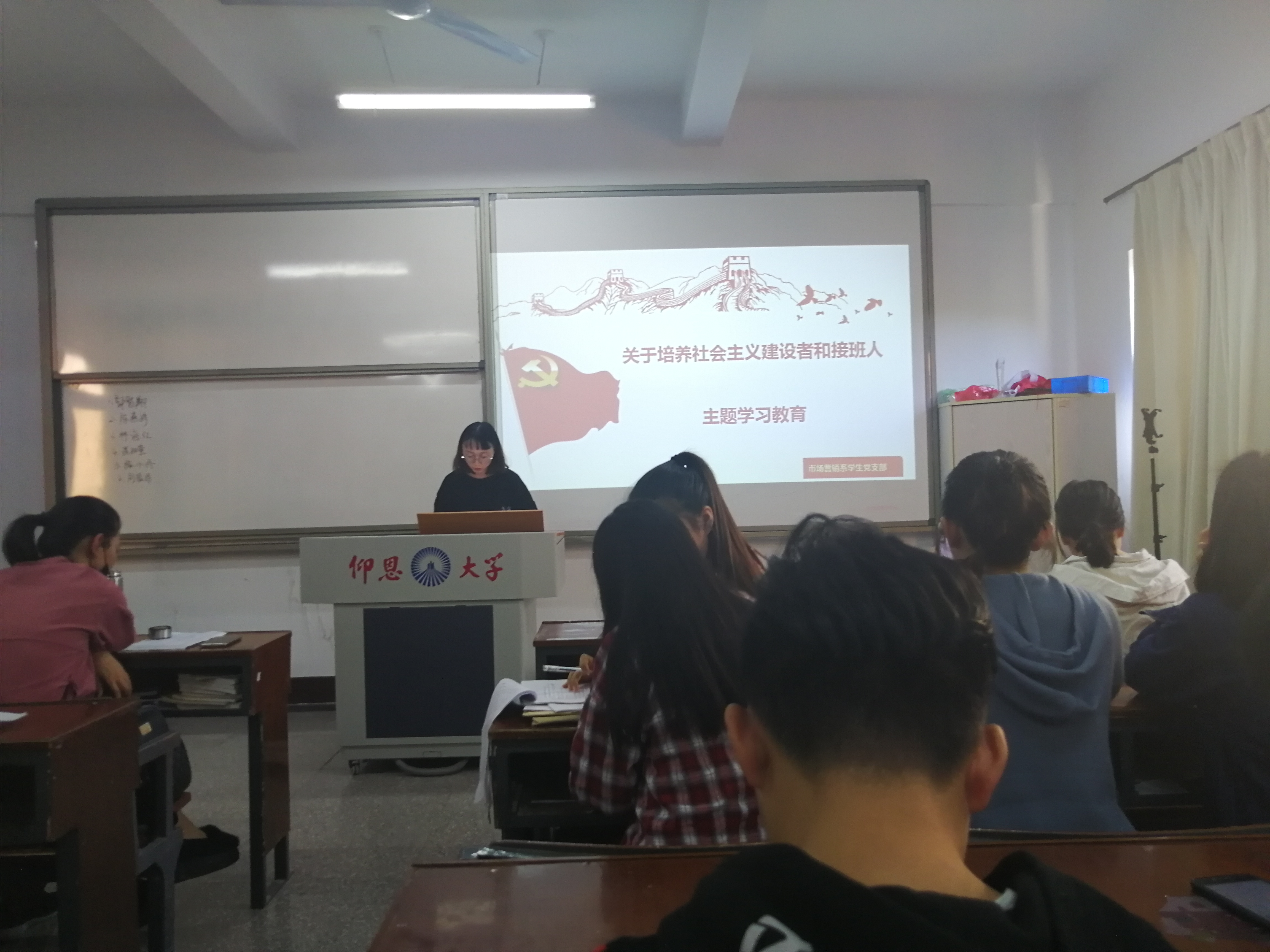 11月29日晚,市场营销系学生党支部在第一教学区共和楼411开展”培养社会主义建设者和接班人”主题学习教育活动。参加本次活动的有市场营销系学生党支部书记连景霞以及支部全体成员。