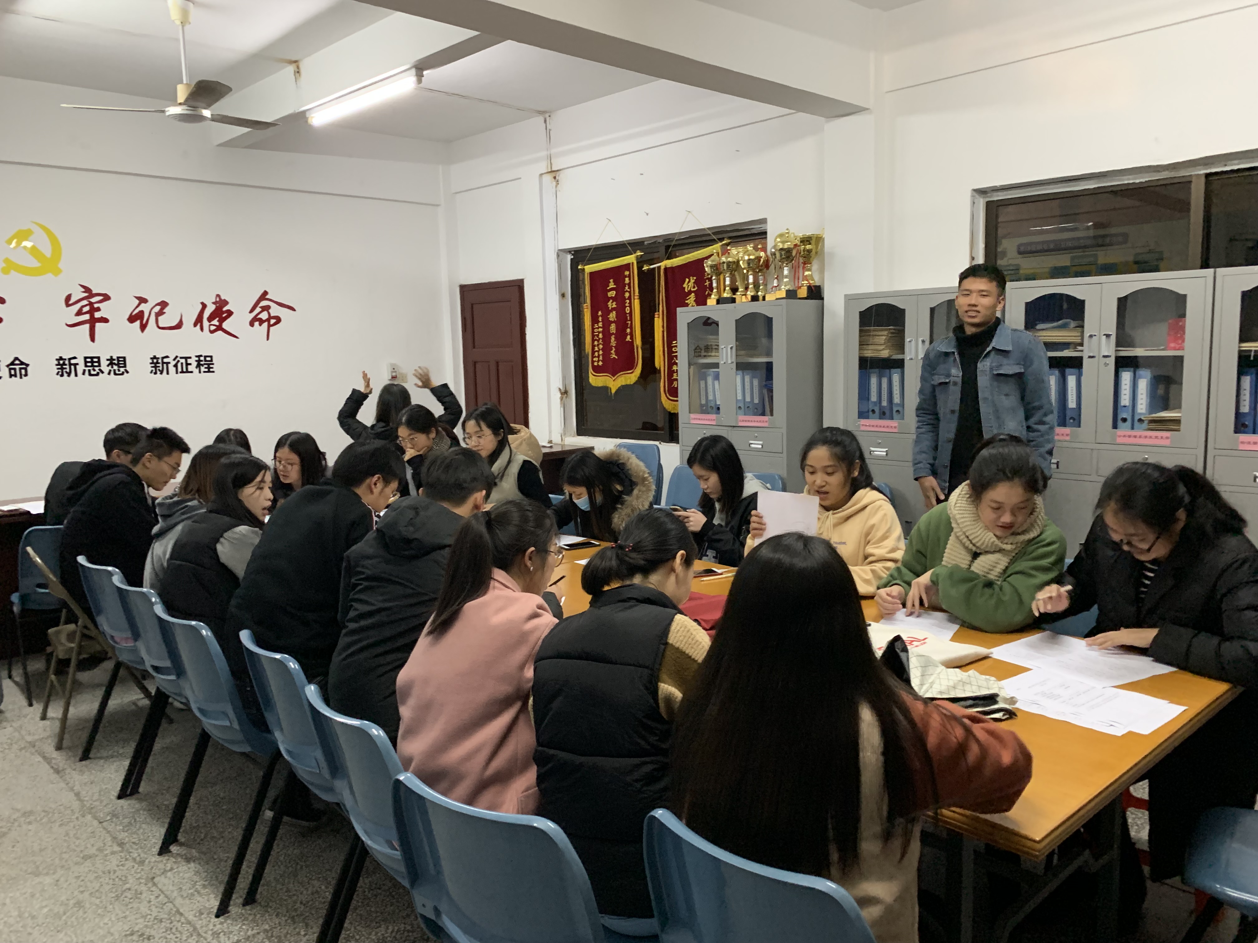 组织生活会现场 大会的主要内容是批评与自我批评以及对正式党员和预备党员进行民主评议。会上,张梦媚老师对这一段时间的支部工作做出了评价,提及在工作中党员不能松懈,更要在思想上跟上党的发展方向。各位预备党员和正式党员按照顺序在会上指出自己近段时间的不足,并对自己的行为进行批评。随后,预备党员和正式党员开始填写“Beat365唯一官方网站党员民主评议情况登记表”,在填写自我评定方面,党员同志要对自己在2018年度的六大方面:政治思想、工作作风、遵守纪律、履行职责、发挥作用、道德品质做出评价。紧接着,民主评议党员,进行综合评定等次,统计得票数情况。