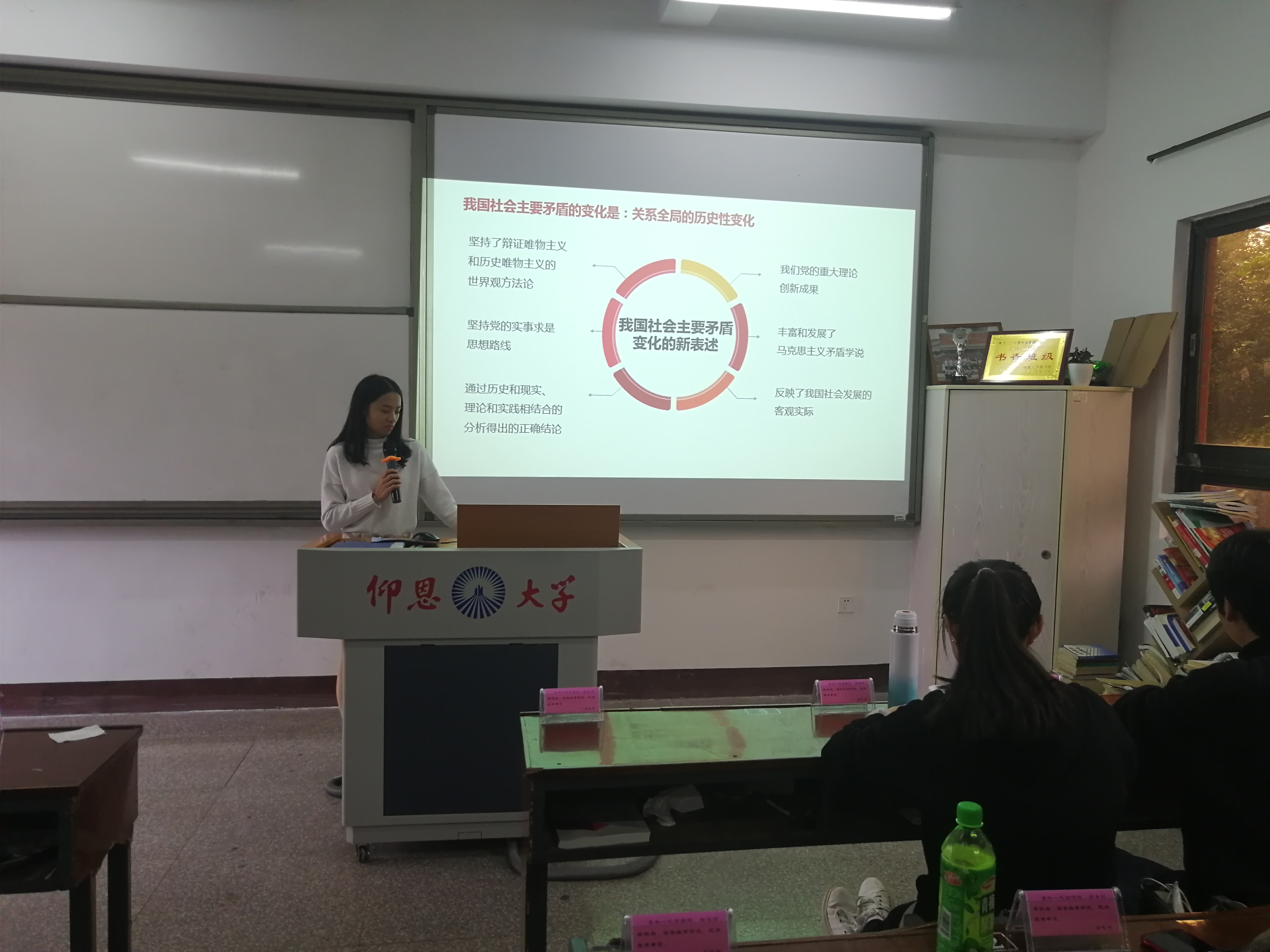 党课学习活动现场 学习活动的最后,市场营销系学生党支部书记连景霞对学习活动进行总结。这次专题党课学习活动,有助于大家准确理解和把握习近平新时代中国特色社会主义思想,也让大家对我国社会矛盾有了更深刻的认识。(洪如莹/文 林锦怡/图 责任编辑:杜心田)