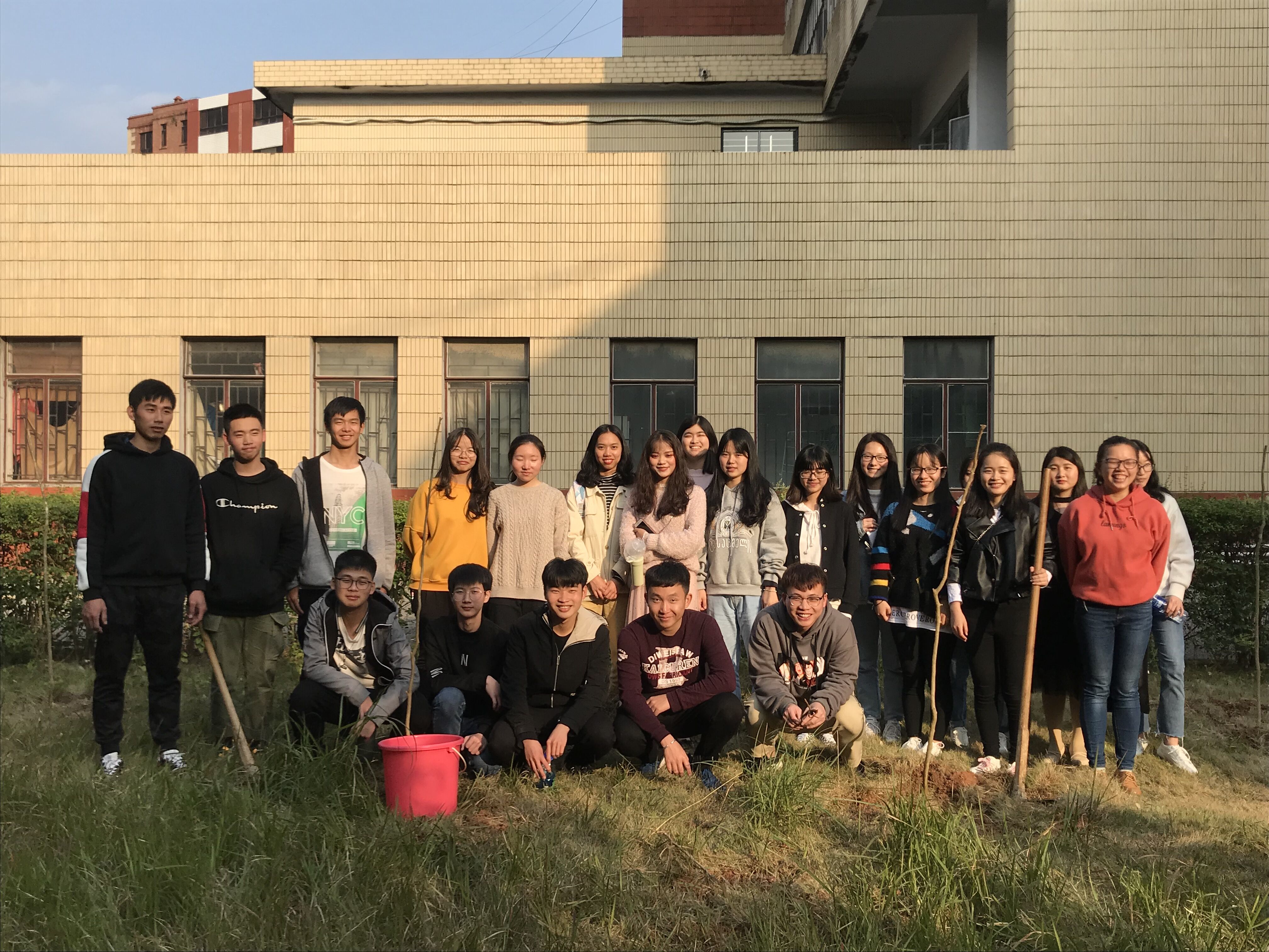 3月11日下午,公共管理系党团学于宏船楼后面的空草坪,开展植树节植树活动。参加活动的有辅导员徐鸿飞老师、党团学主要学生干部、以及各部门学生代表。
