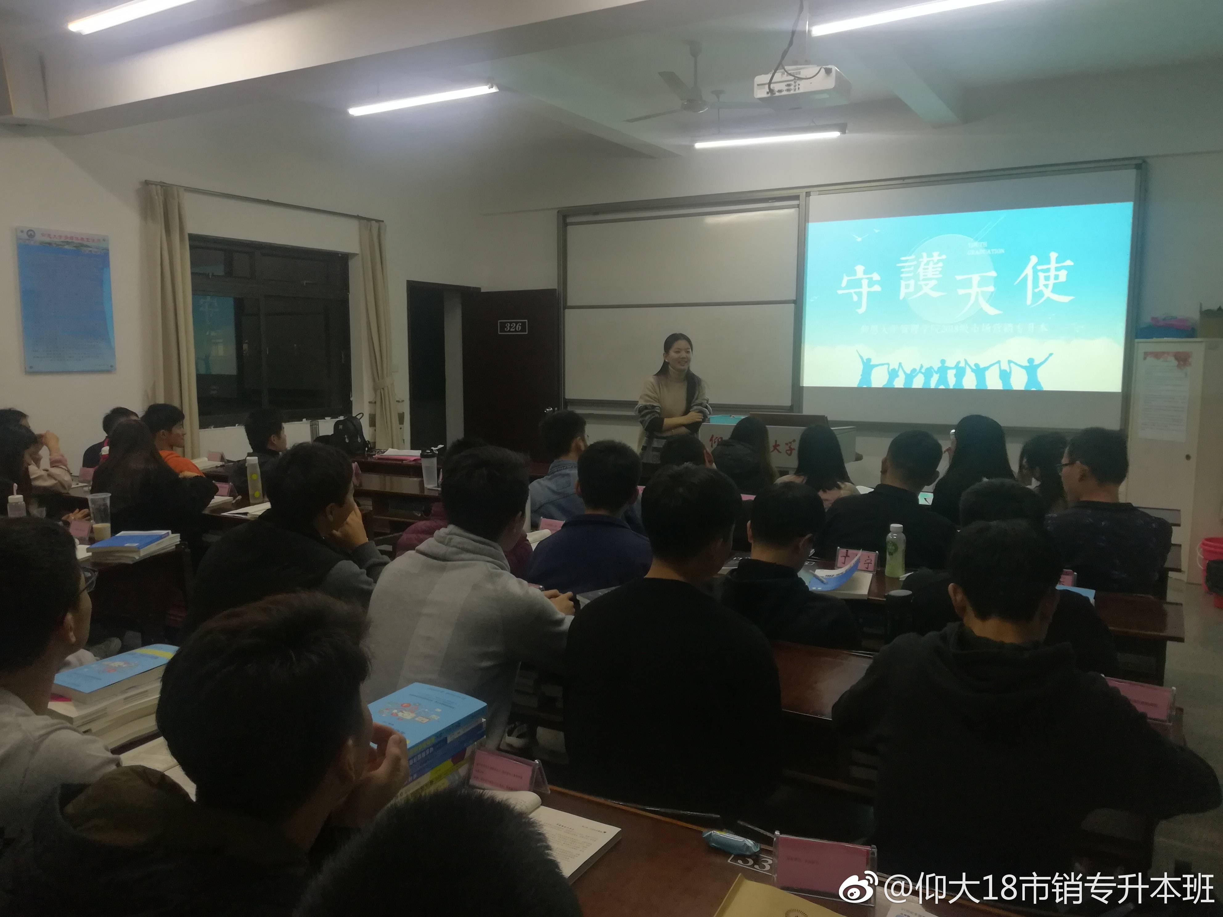 为营造温暖、友爱的班级氛围,增进同学们的感情,加强班级凝聚力。3月28日晚7点,2018级市场营销3个班级在共和楼各班级固定教室开展“守护天使”活动闭幕仪式。本次活动历时近一个月,由辅导员策划组织开展,3个班级共104名同学参与。