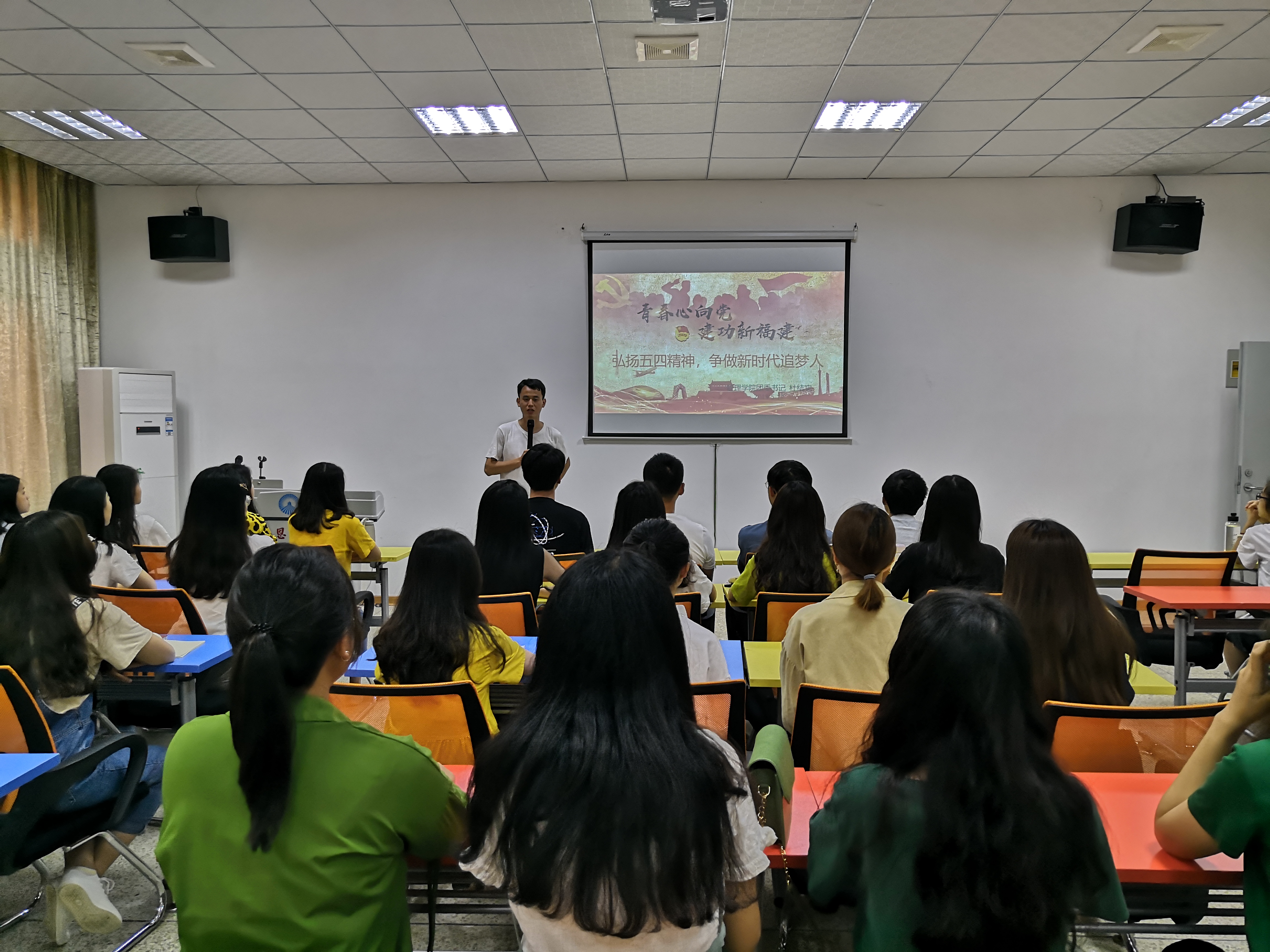 宣讲现场 杜结实主要围绕“重温峥嵘岁月”、“解读五四精神”、“弘扬五四精神,争做新时代追梦人”等三个方面展开,同时结合习近平总书记在党的十九大、纪念五四运动100周年大会等会议上的重要讲话精神进行讲解。他通过播放《我的1919》节选视频,带领2016级工商管理1班团支部青年团员回顾五四运动的光辉历程,在声情并茂的宣讲中加深了团员青年们对“五四精神”的认识和理解。