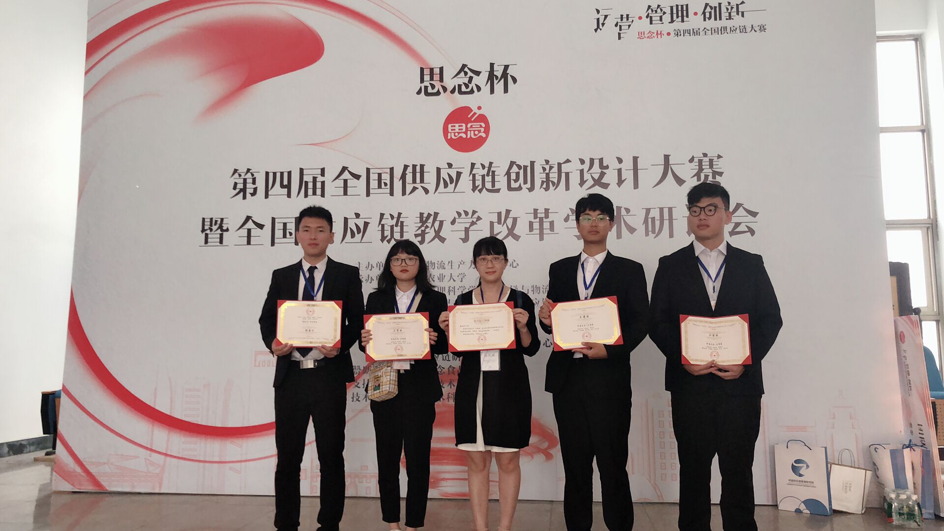 近日,由中国物流生产力促进中心主办,青岛农业大学、中国管理科学学会供应链与物流管理专业委员会承办的“思念杯”第四届全国供应链创新设计大赛在青岛落下帷幕。我院许俊瀚、刘宏达、李灵、陈雨欣4名学生组成的“大嘴狼队”在姚秋珍和郑雪清两位老师的带领和指导下,经过半年时间的不断练习、操作、探索,一路过关斩将,在全国总决赛中发挥出色,荣获本科组三等奖。