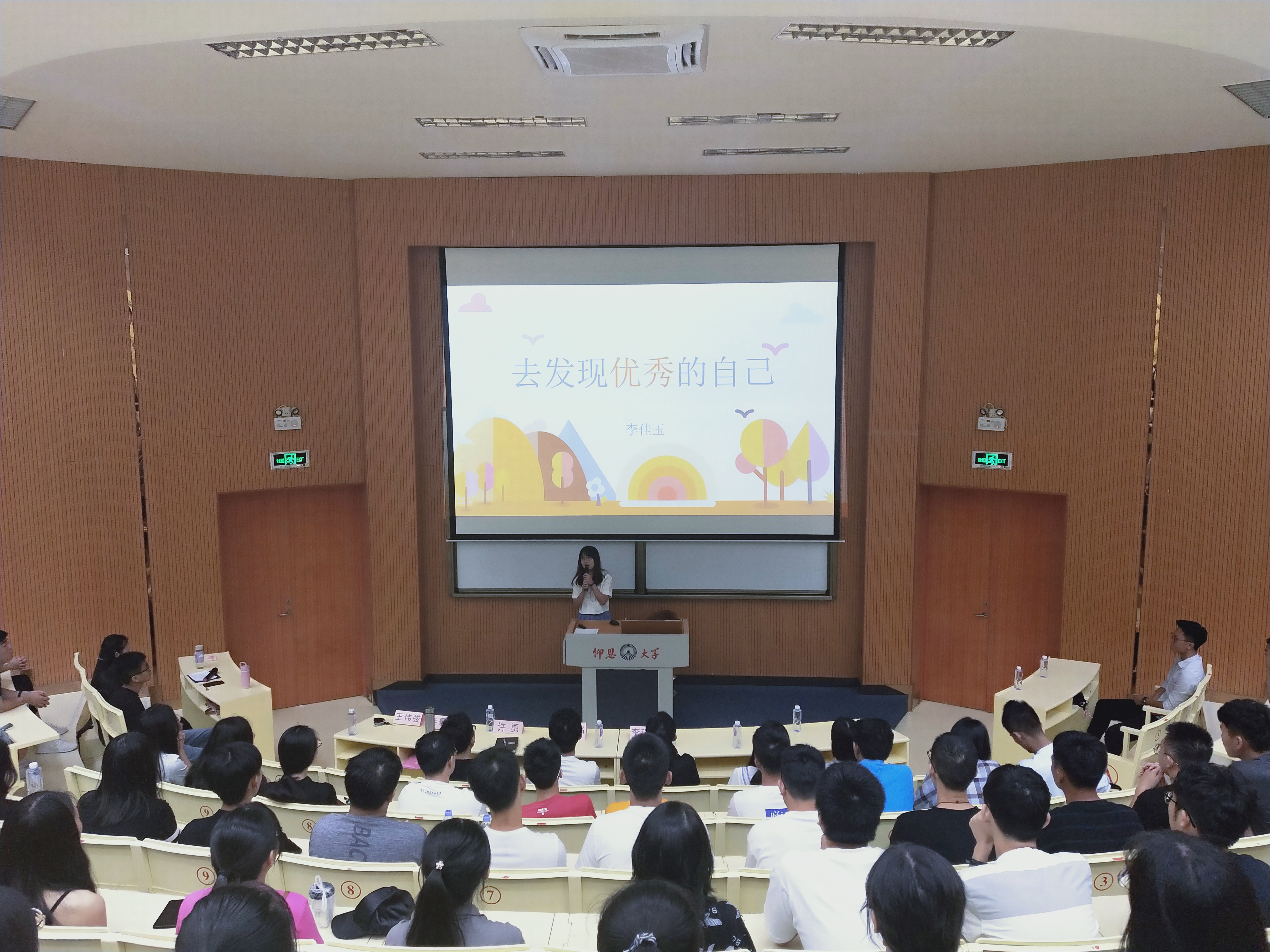 王伟骏老师作分享 为了提高新生对本专业的重视,新生大会还邀请了郭智翔学长及李佳玉学姐分享他们暑假的实习经历,他们结合自身实际为在场师生讲述了在步入社会时所要具备的品质及能力。在大会尾声,许惠铭老师对新生们提出了期望,他希望新生们能做到独立思考、积极向上。