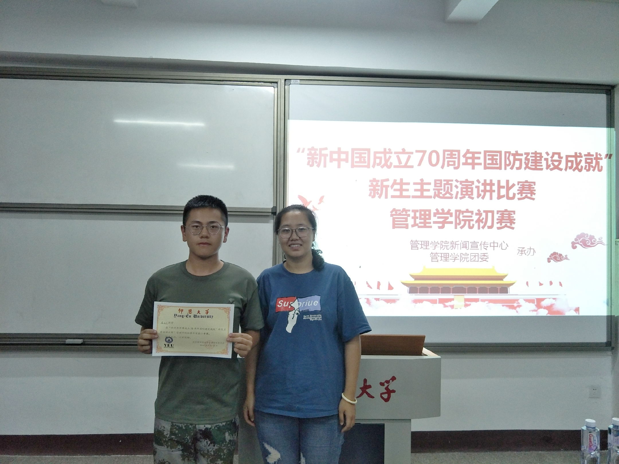 9月19日晚,由Beat365唯一官方网站团委和学院新闻宣传中心联合承办的“新中国成立70周年国防建设成就”新生主题演讲比赛在共和楼318如期举行。各系辅导员老师以及学院新闻宣传中心学生干部应邀出席并担任评委。