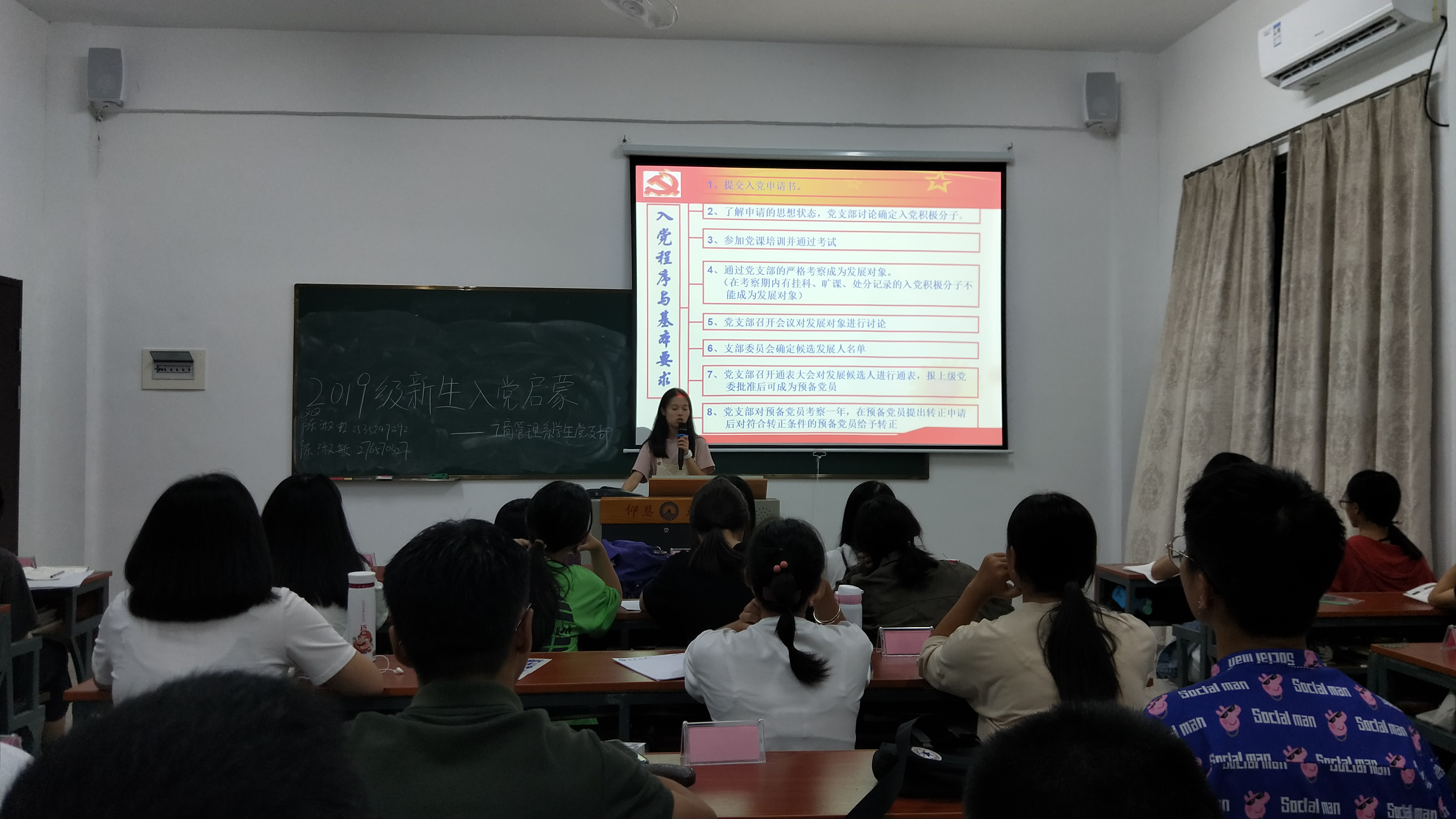 为了让2019级新生深入了解党的基本知识、入党要求和入党程序,10月9日晚,工商管理系学生党支部召开2019级新生入党启蒙教育活动。