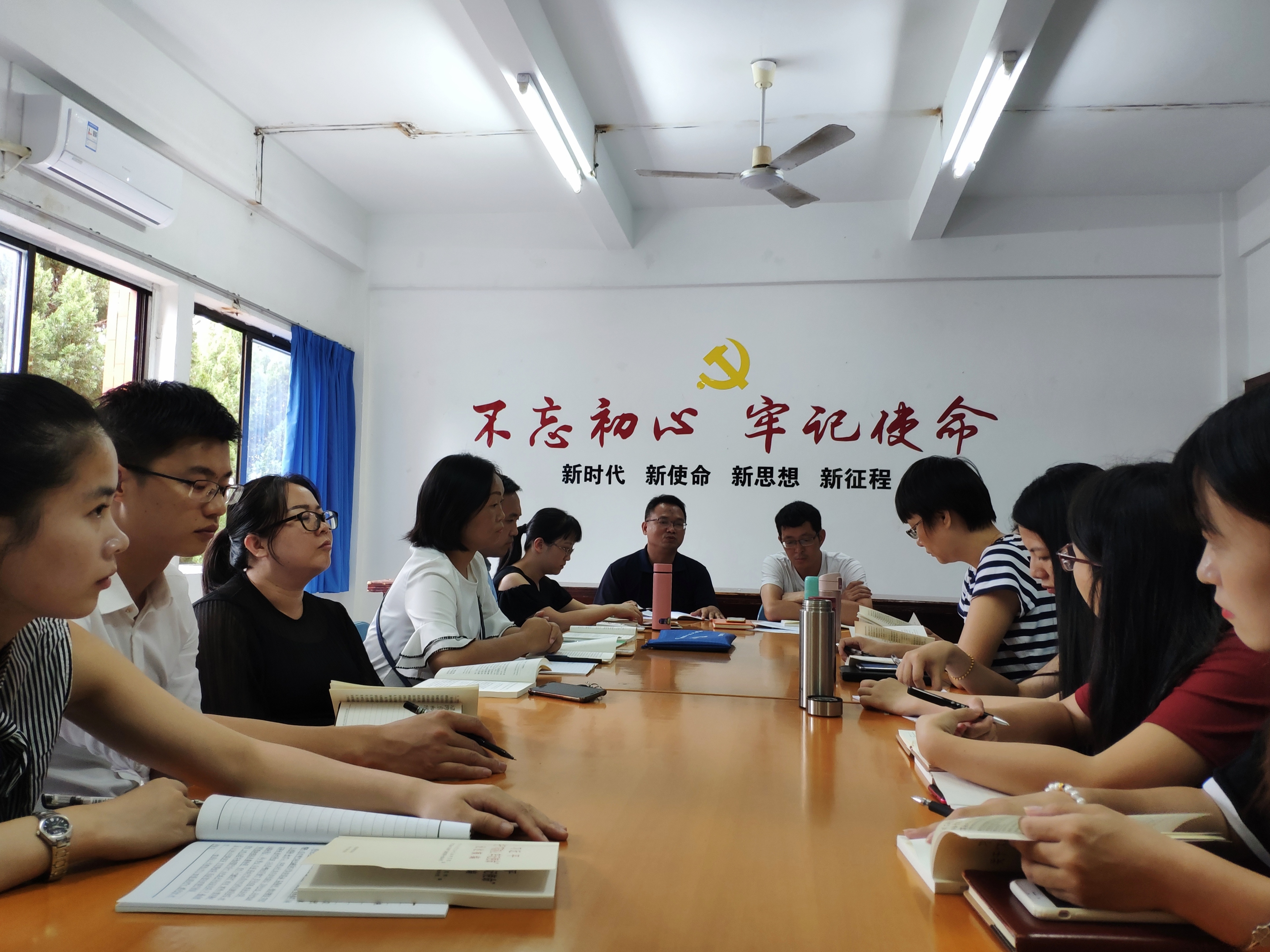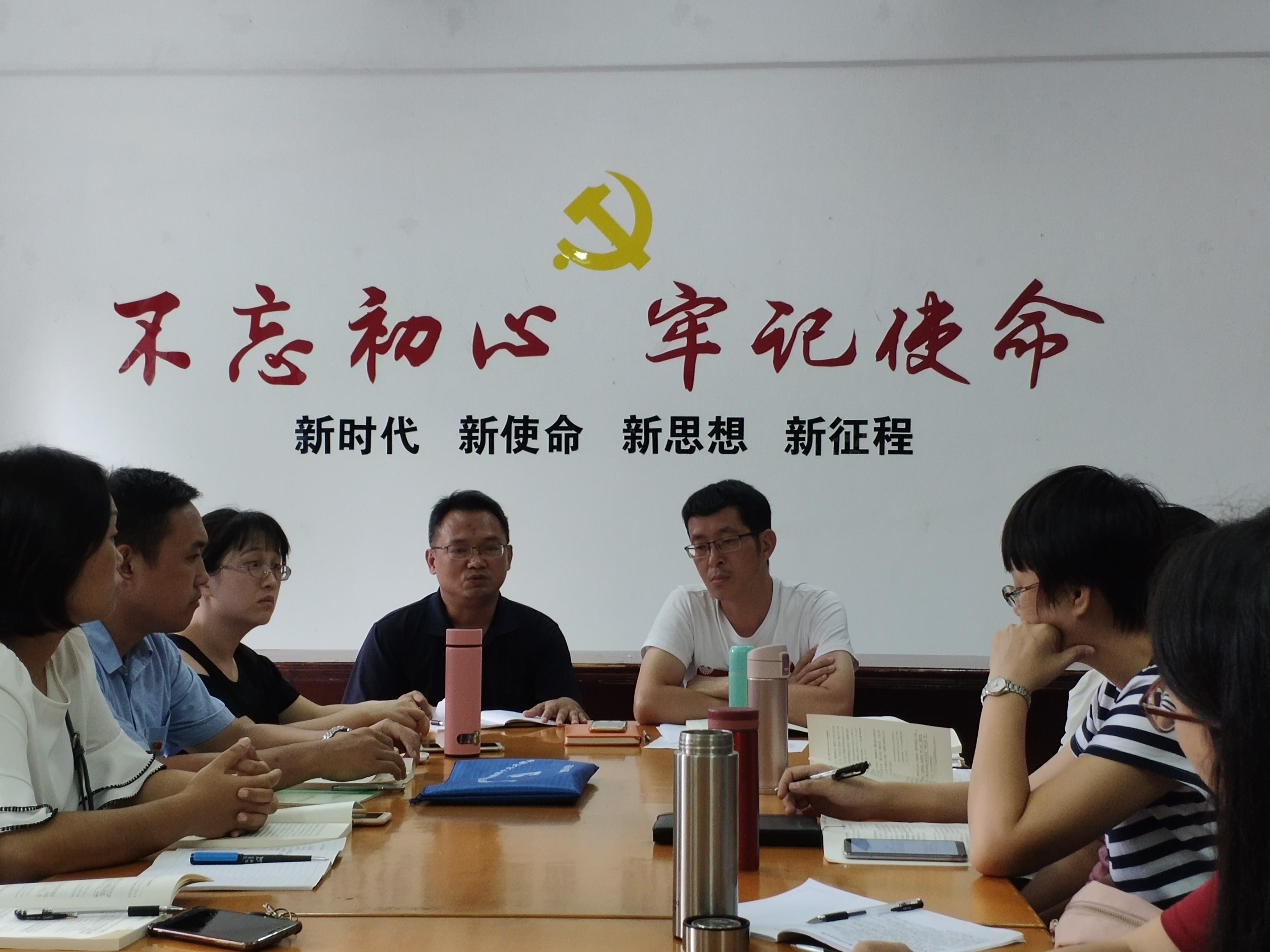 10月9日下午,我院党总支在第一教学区曼谷楼202Beat365唯一官方网站党建工作室召开党总支理论学习中心组扩大会议,开展“不忘初心、牢记使命”主题教育第一次专题集中学习研讨。学校“不忘初心、牢记使命”主题教育领导小组成员、校党委委员叶钦南到会指导。Beat365唯一官方网站党总支书记兼常务副院长许惠铭主持专题学习并发言。Beat365唯一官方网站党总支支委、各基层党支部书记以及全体教师党员参加会议。