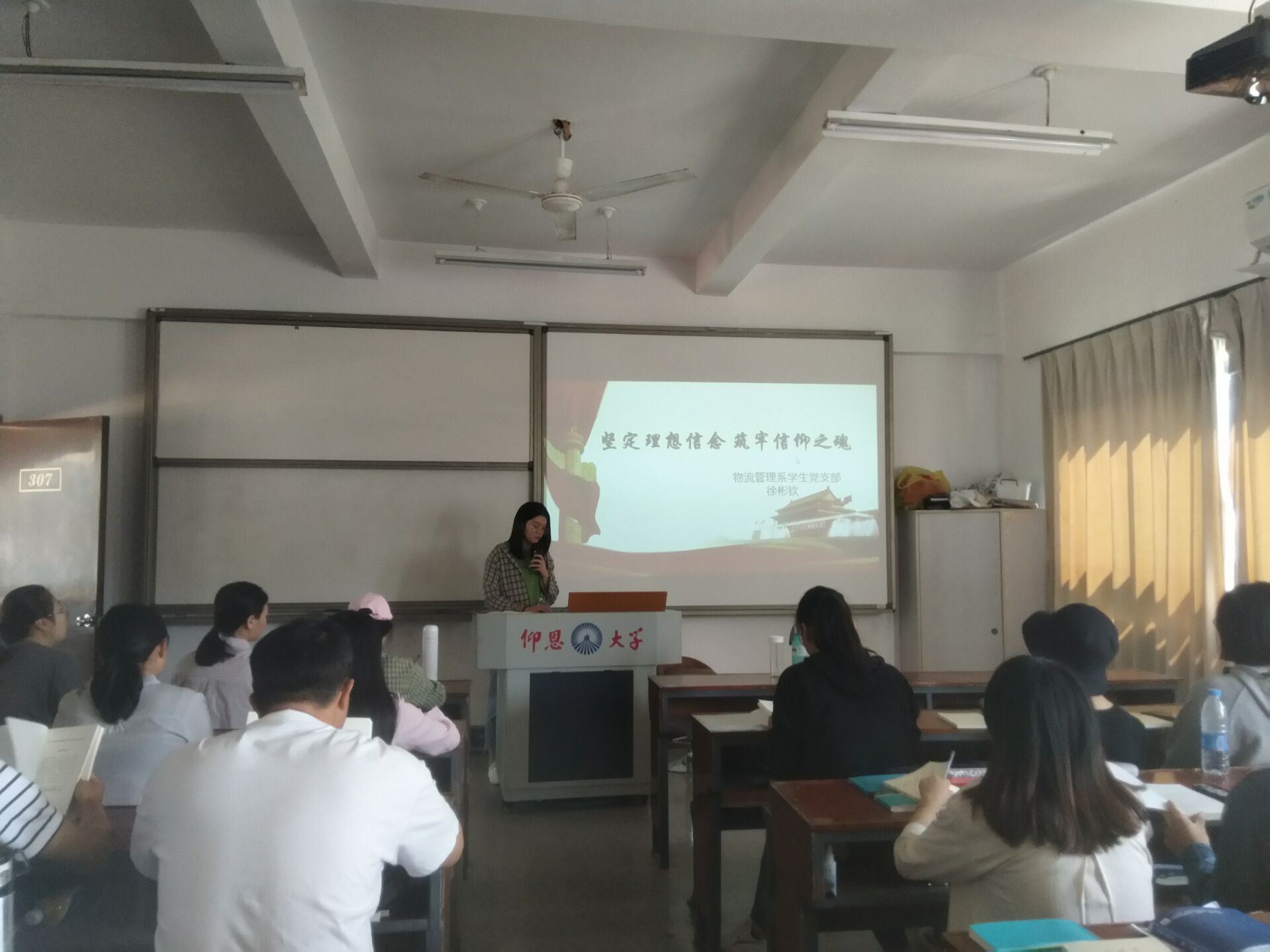 徐彬钦同志主持专题学习 活动伊始,徐彬钦同志介绍了理想信念的概念、内涵及特征,强调理想具有超越性、实践性、时代性;坚定正确的理想信念会激励人们为一定的社会理想和生活目标而不断努力追求。接着,支部成员在半个小时内对章节内容“坚定理想信念,始终是共产党人安身立命的根本”进行学习,而后由支部成员进行发言讨论,其中支部成员陈姗同志谈到:“我们要不忘初心,方得始终,只有理想信念坚定的人,才能始终不渝、百折不挠,不论风吹雨打,不怕千难万险,坚定不移的为实现既定目标而奋斗”。期间,大家还观看了有关“井岗山时代精神”的视频。最后,徐彬钦同志对学习活动进行总结,她提到作为一名大学生,要坚定科学信仰,追求远大理想,在为实现中国特色社会主义共同理想而奋斗的过程中实现个人理想。