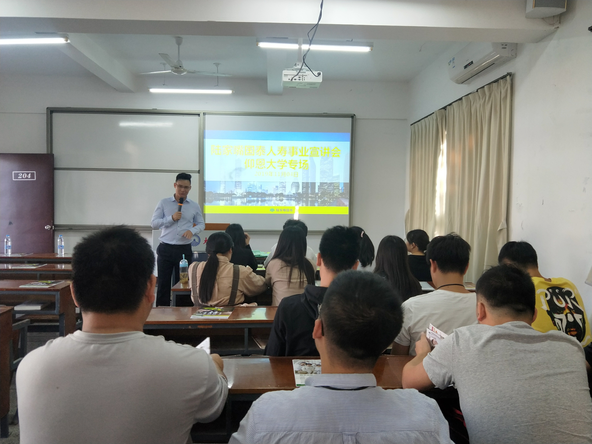 11月4日下午,工商管理系团学于共和楼204教室举办陆家嘴国泰人寿厦门分公司宣讲会。