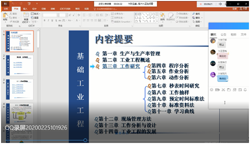 因工业工程这个专业比较冷门,各教学平台上资源很少,找得到的资源又跟本系的教学目标存在一定偏差。在选定使用爱课程平台之后,便摸索了一条“上课先直播,直播完分发任务”的道路。慕课资源固然很好,但使用教材内容跟实际本系教学目标存在差距。在明确了“直播为主、慕课为辅”的方案之后,每次上课先在QQ直播与学生进行线上教学,根据教学目标的设置对每一次上课直播内容进行调整,利用投屏功能给学生投放教学课件进行直播和互动。让学生对本节课内容详细了解掌握之后下发任务,利用慕课资源,调整设置学生每次线上慕课学习的观看内容,以及完成线上测验和作业。通过这样相辅相成的手段,更好的利用线上资源进行网课教学和授课内容调整。