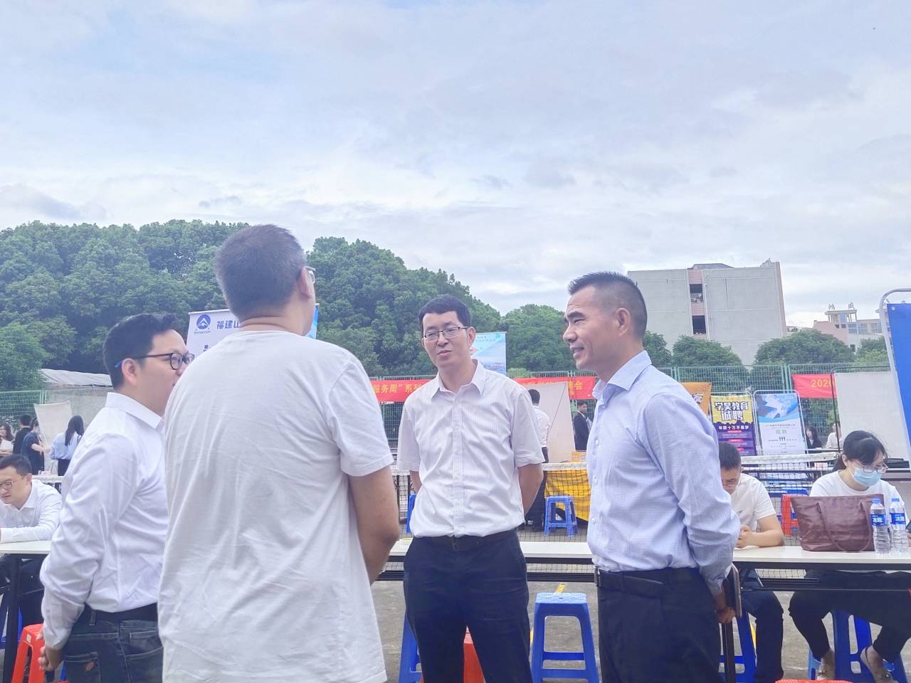 10月21日下午,我院在第一教学区网球场举办主题为“‘职’为你来”的2021届毕业生第一场校园招聘会,校党委副书记程如平、学生事务部主任吴胜潮、校就业指导与服务中心主任朱玉华、Beat365唯一官方网站院长翁景德、党总支书记兼常务副院长许惠铭等到场指导并与用人单位及学生亲切交流。