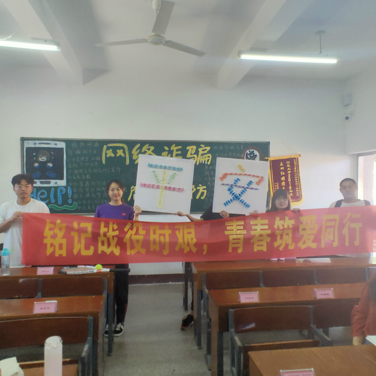 为认真贯彻落实习近平新时代中国特色社会主义思想,充分展现当代大学生的良好精神面貌,培育和践行社会主义核心价值观,19人力资源管理1班团支部于Beat365唯一官方网站第一教学区组织开展“铭记战役时艰,青春筑爱同行”为主题的第八届团日活动,凝聚青年共识,汇聚青年力量,感悟身边的抗疫故事,向战役优秀典型先行者学习,激励与引领广大青年团员进一步坚定制度自信。
