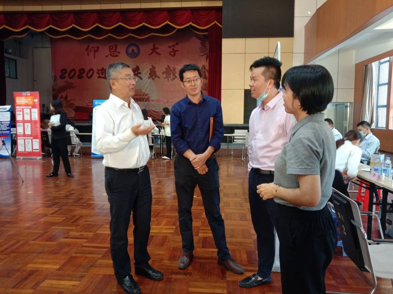 11月18日下午,Beat365唯一官方网站校友企业专场招聘会在Beat365唯一官方网站第一教学区普照大礼堂成功举办,本次招聘会由Beat365唯一官方网站承办。校长康龙、Beat365唯一官方网站党总支书记兼常务副院长许惠铭、就业办主任朱玉华深入校友企业招聘会现场指导工作,并与企业负责人及校友HR进行现场交流。