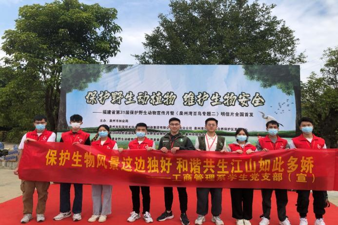 工商管理系学生党支部于2021年10月29日上午前往泉州市海丝野生动物园开展以“保护生物风景这里独好,和谐共生江山如此多娇”为主题的党日志愿活动。