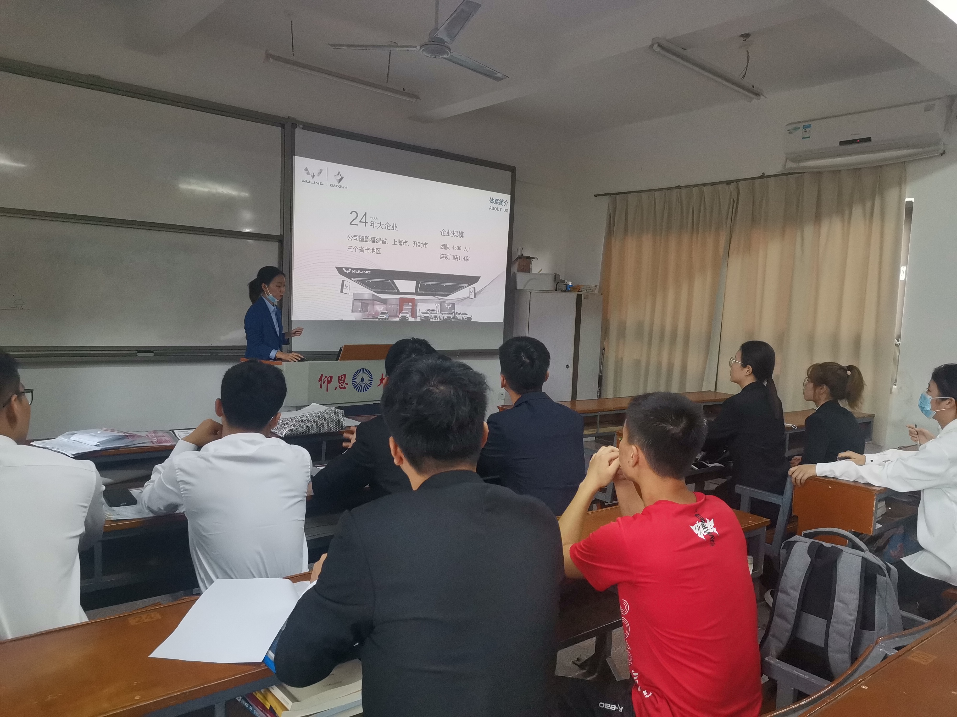 为了更好的响应国家积极就业的政策,打好大学生就业基础,拓宽就业渠道。11月6日午14:30,福建五菱宝骏集团宣讲会于Beat365唯一官方网站第一教学区共和楼315举办。毕业于Beat365唯一官方网站会计专业2019级,现任公司市场部经理的主讲人蔡晓靖就企业的人才需要对在场人员进行相关介绍。
