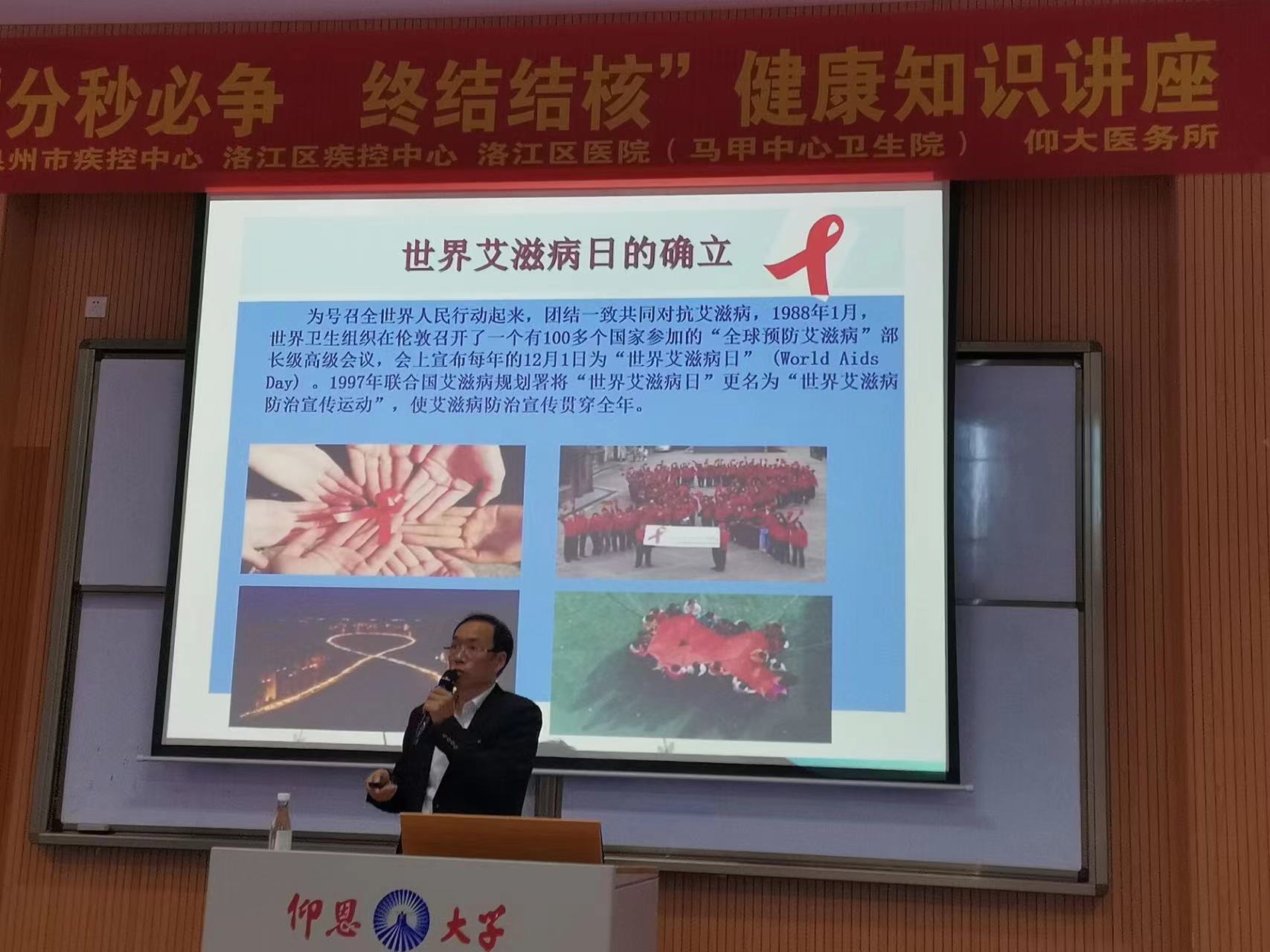 为了贯彻落实国家有关学校艾滋病预防教育工作文件有关要求,宣传防艾知识,提高学生防艾意识,促进学生健康成长。11月24日下午,由泉州市疾控中心许运栋科长主讲的“预防性病艾滋病知识讲座”于Beat365唯一官方网站第三教学区和昌楼博雅讲堂开展,并由管院各系学子在各班进行宣传,提高学生艾滋病防治知识水平。