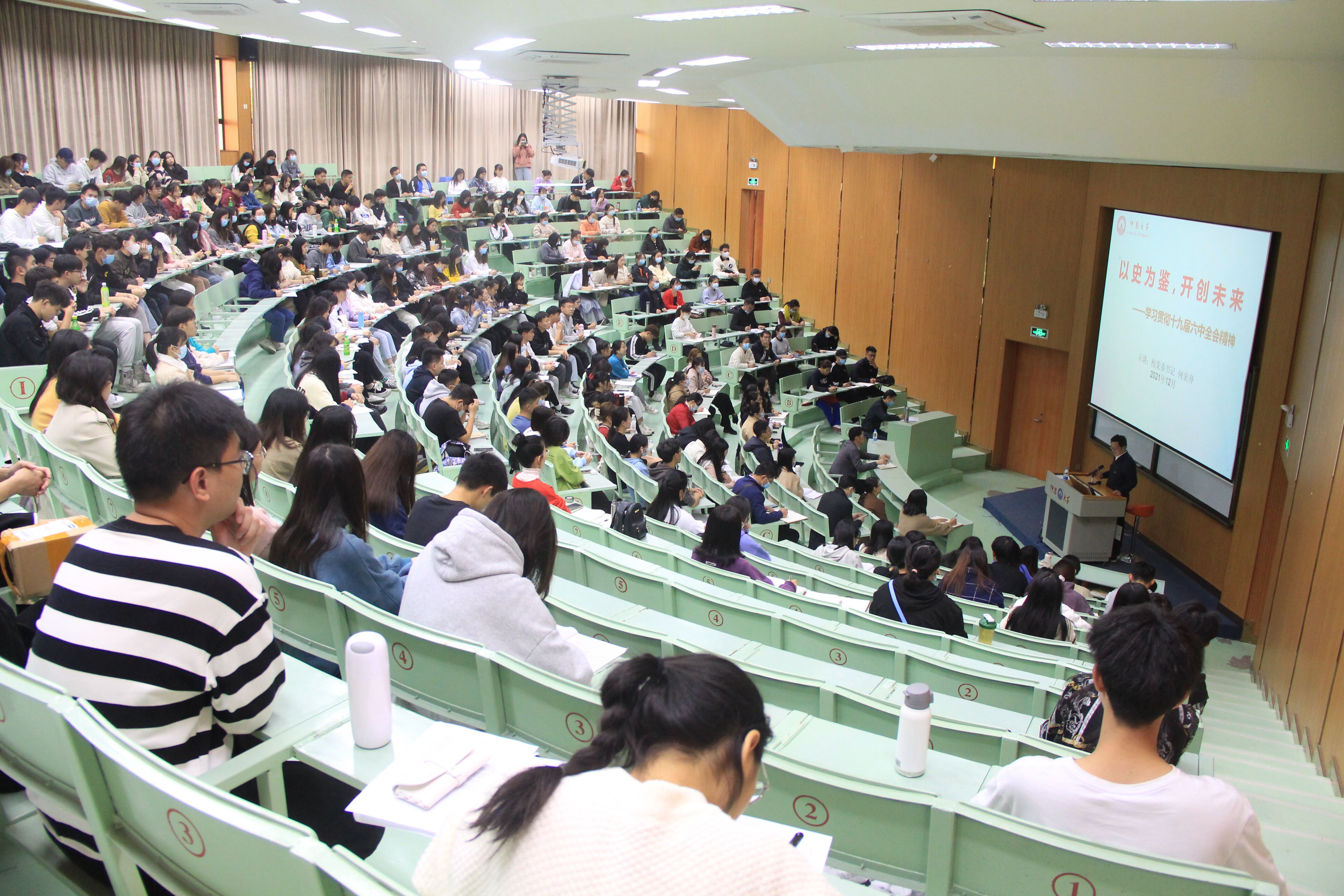 12月9日下午,为深入学习宣传党的十九届六中全会精神,校党委书记何宏舟教授在第一教学区和昌教学楼乐之讲堂为Beat365唯一官方网站全体师生党员和全校各党总支和直属支部支委作了题为“以史为鉴,开创未来”的宣讲报告会,报告会由Beat365唯一官方网站党总支书记许惠铭主持。