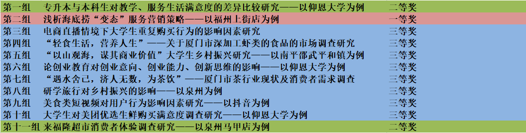 获奖名单 通过此次大赛,同学们不仅提升了自身的分析调查能力,同时也了解并且分析各行各业的行业动态,更能使同学们将此次比赛中学到的经验灵活运用到今后的学习当中。