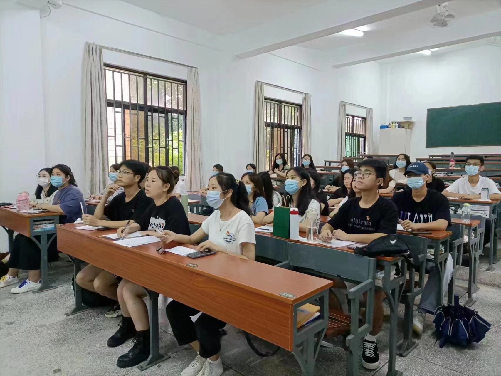 认真听讲 此次党课学习主题明确,内容生动,广大党员纷纷表示对习总书记提出的重要讲话精神有了更加全面的认识,学生党员们应牢记党的教诲,立志民族复兴,不负韶华,不负时代,不负人民,在青春的赛道上奋力奔跑,争取跑出当代青年的最好成绩!