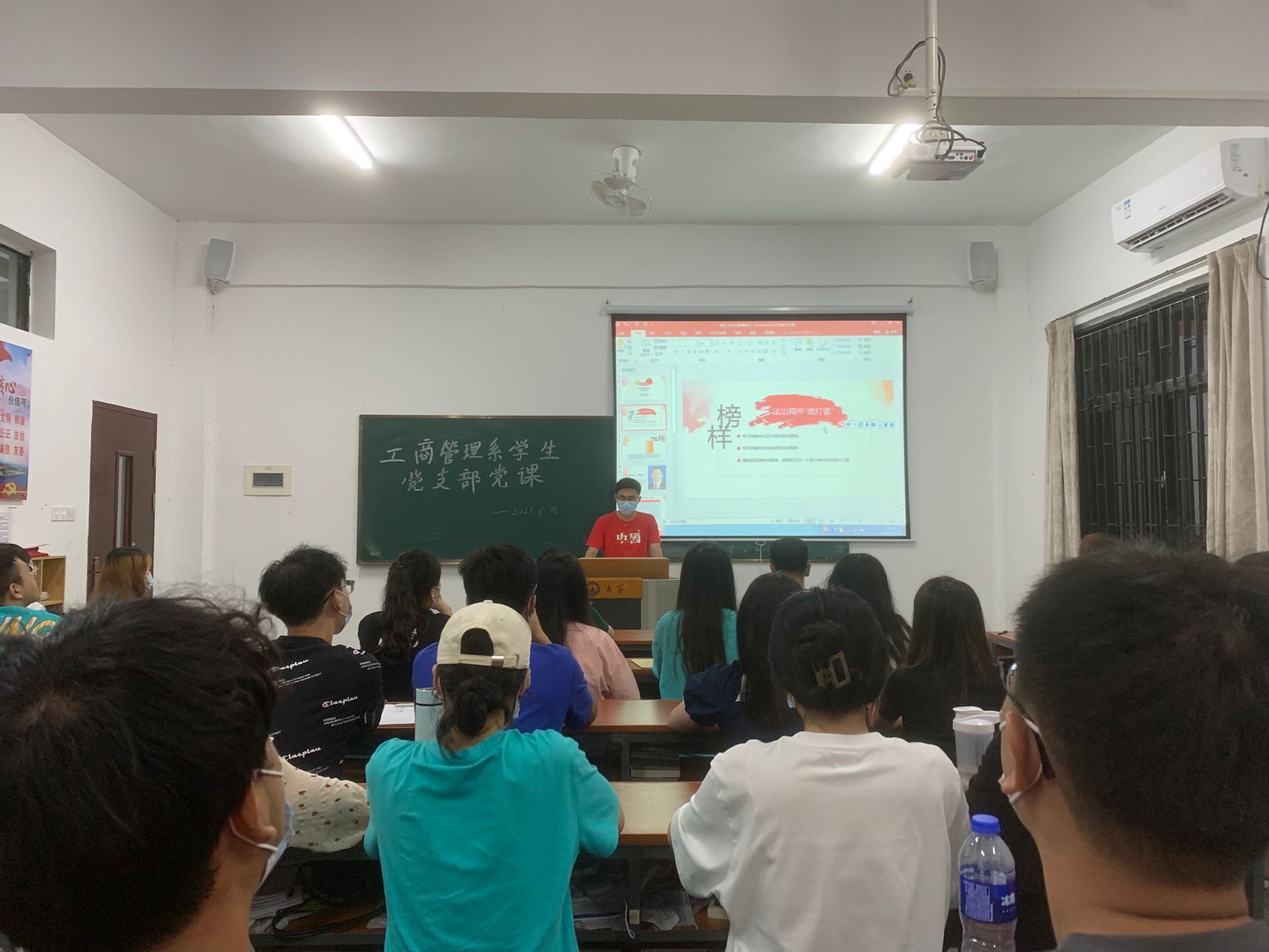 为教育引导支部党员学先进、赶先进、当先进,以先进为榜样,充分发挥先进典型示范带头作用,2022年6月16日,工商管理系学生党支部组织全体党员于祥贤楼101开展观看先进人物影片——《邹碧华》党课活动。本次活动支部全体党员参与,由支部书记冯瀚霄主持。