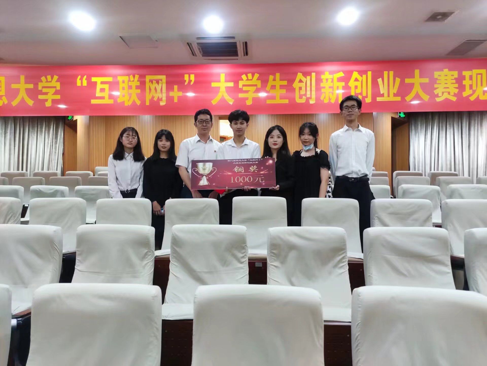 比赛照片 最终,经过激烈的角逐,我院团队长安久乐工作室在众多项目中脱颖而出荣获此次比赛金奖,我院团队联网+纳米光变、弱势乡村振新计划荣获此次比赛银奖,我院团队半盏清茶荣获此次比赛铜奖。