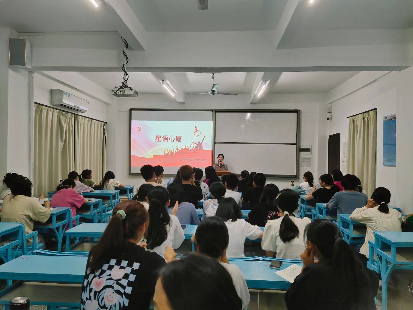 9月27、28日,市场营销系学生党支部于吉隆楼各新生班级开展“星语心愿”许愿立项活动,全体党员参加。