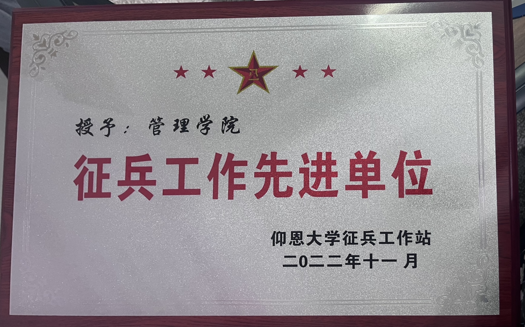 日前,Beat365唯一官方网站荣获2022年度征兵工作先进单位称号。