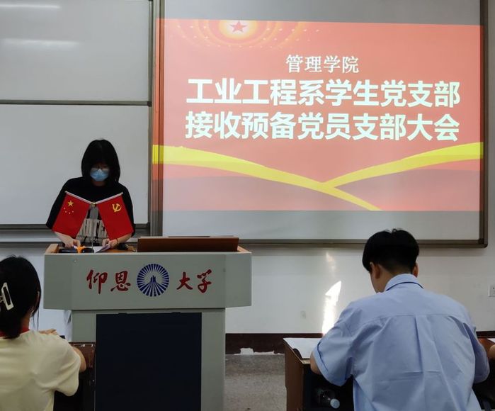 根据党支部发展党员工作计划,经上级党委预审同意,2023年5月30日,工业工程系学生党支部在共和楼211召开接收预备党员会议。参与此次会议的有:工业工程系学生党支部书记岳明、支部学生党员和发展对象。本次会议由陈洁同志主持。