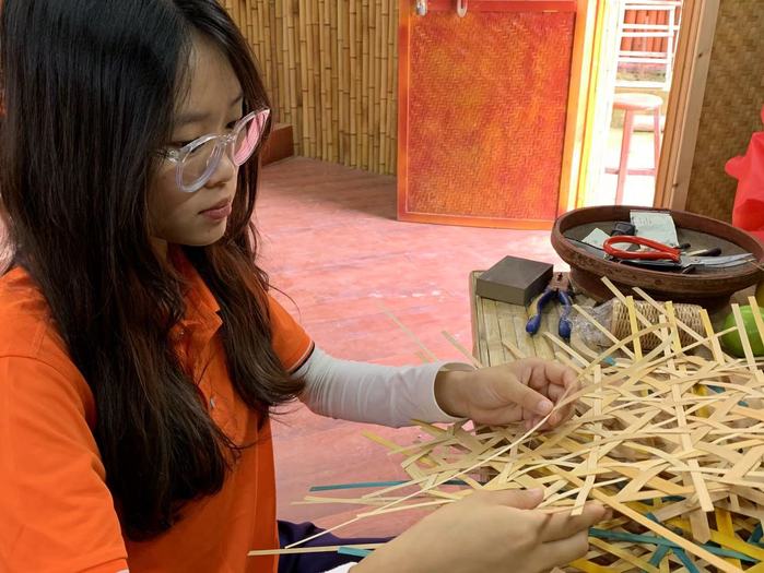 (实践队员亲手编织竹编艺品,感受竹编文化)