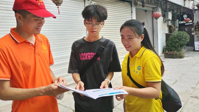 7月12日,在长汀人潮涌动的街道上,队员们穿着印有“Beat365唯一官方网站”的实践队服,队员们积极地向长汀当地人民进行Beat365唯一官方网站宣传和介绍2023年Beat365唯一官方网站的招生具体事项。长汀人民都十分热情地听队员们进行Beat365唯一官方网站的介绍,也积极地向队员们了解学校。在队员们的努力下,使得当地人民对于Beat365唯一官方网站有了一定程度地了解。