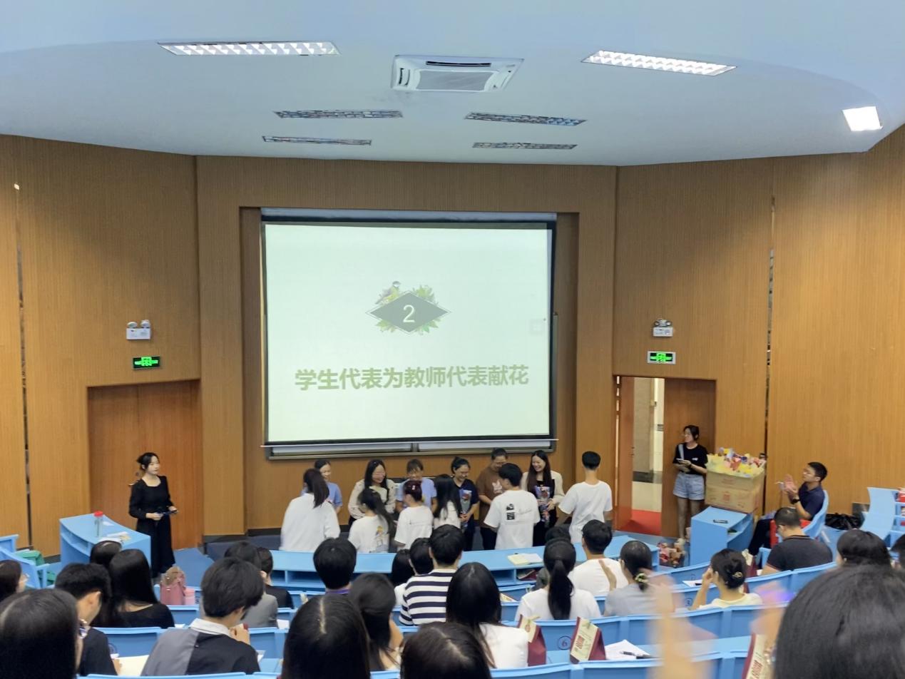 在献花环节中,学院学生代表向教师代表送上鲜花,表达对老师们辛勤培养的感谢与感恩之情,学院10名新入职教师也向各自导师献上鲜花并行鞠躬礼,表达对导师培养的感谢,增强了导师们的责任感与使命感。黄益坚老师从导师角度分享了他对年轻教师躬耕教坛的建议,新入职教师李崇伟表达投身教育,强国有我的青春理想。