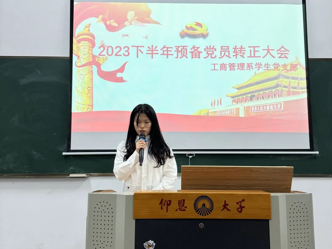 2023年12月18日,工商管理系学生党支部于祥贤楼206室召开预备党员转正大会,本次会议由工商管理系学生党支部滕睿思同志主持开展,支部全体成员参加本次会议。