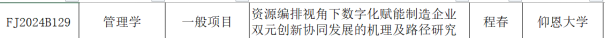 2024年3月25日,2024年度福建省社会科学基金项目立项结果公布,我院教授程春的“资源编排视角下数字化赋能制造企业双元创新协同发展的机理及路径研究”获一般项目立项。