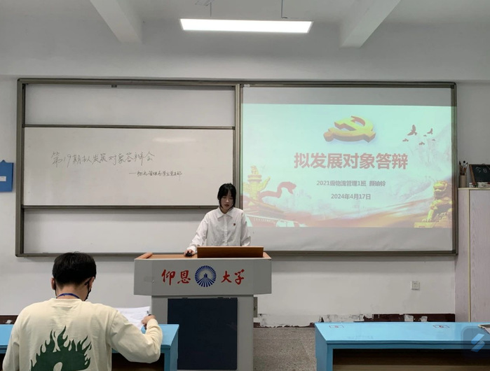 为深入贯彻党的二十大精神,进一步做好党员发展和教育工作,进一步端正入党动机,考察党员发展对象的理论知识和党性修养,严格把控党员“入口关”、发展“质量关”,同时加强对第19期拟发展对象的了解、教育及培养。物流管理系学生党支部于2024年04月17日共和楼215教室召开第19期拟发展对象答辩会。