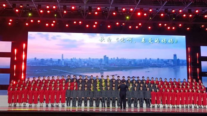 《党啊,亲爱的妈妈》旋律优美,词作朴实无华却饱含深情。歌词将党比作母亲,含辛茹苦地培养儿女成人,也歌颂了党的崇高和伟大,唱出了人民群众的心声。同学们深含热泪的演唱,通过抒情、悠扬的曲调,表达了人们对党的深厚感情。歌曲旋律优美动听,让人感受到一种温暖和感动。女孩子们轻柔如水般的舞蹈在我们眼前展开,眼神温柔且坚定,表达着对党深切的爱。