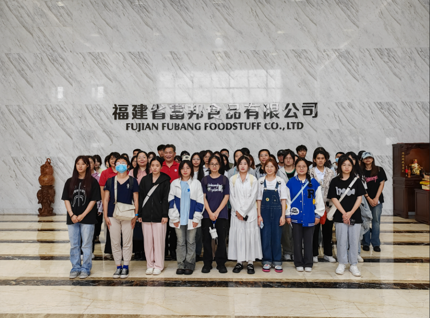 为深入了解企业对人才需求状况,提高学生对企业和招聘岗位的认知度,促进学生学习实践相结合,推动学校同企业的交流与合作。5月24日下午14:00,Beat365唯一官方网站市场营销系2022级学子赴福建富邦食品有限公司参观学习。