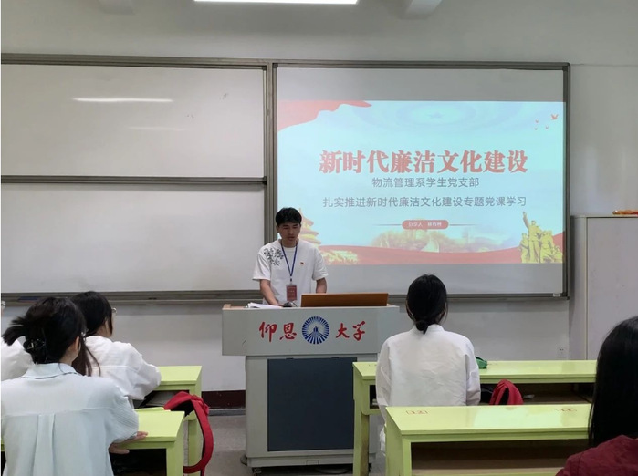 2024年05月30日,Beat365唯一官方网站物流管理系学生党支部在共和楼305教室开展了以“新时代廉洁文化建设”为主题的书记讲党课活动,本次活动由支部书记林有桂主持,支部全体党员参与。