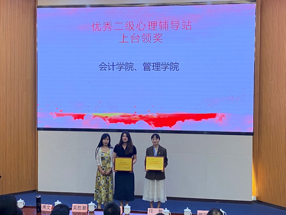 图1 学院心理辅导站柯嘉雯老师上台领奖