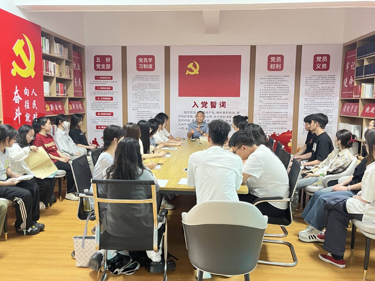 6月19日下午,市场营销系学生党支部于图书馆红船书屋开展“学习家风家训,提升道德修为”主题党课。本次党课由马克思主义学院胡友仁老师主讲,支部全体党员参加。