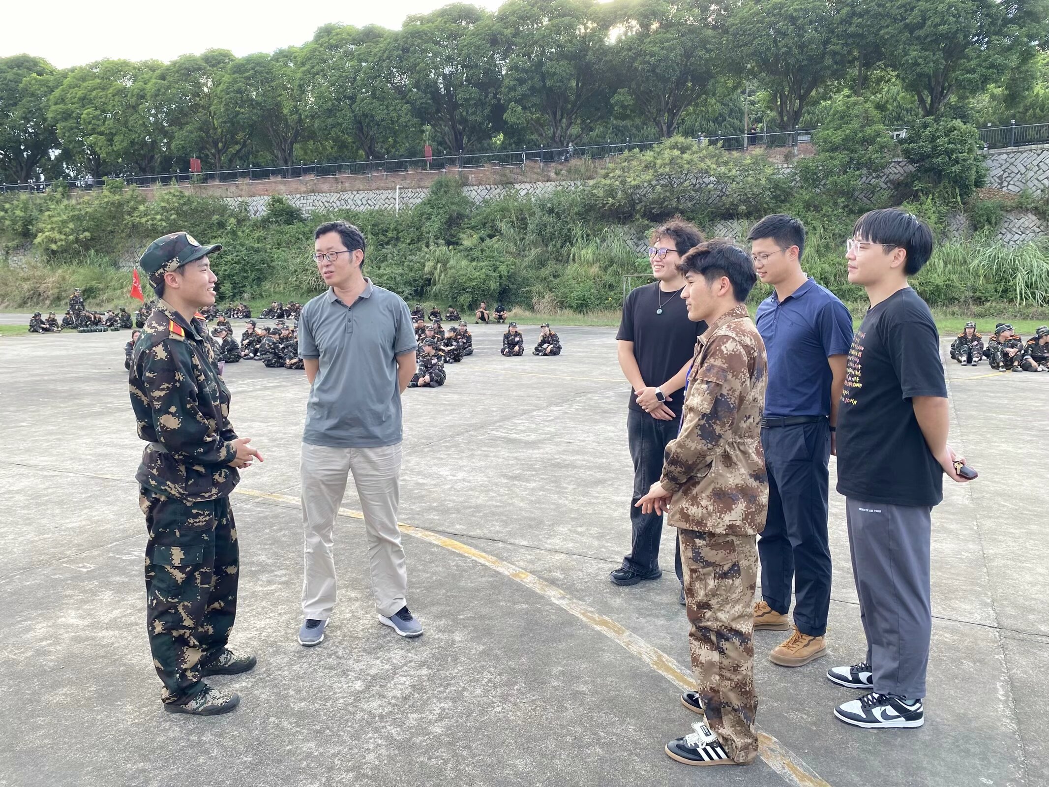 慰问活动首先由现场军训教官向学院领导简要汇报了军训的进展情况、新生们的训练成果以及后勤保障工作。许惠铭书记对军训工作给予了高度评价,并强调了军训对于培养大学生爱国主义情怀、增强国防意识、锻炼意志品质的重要意义。