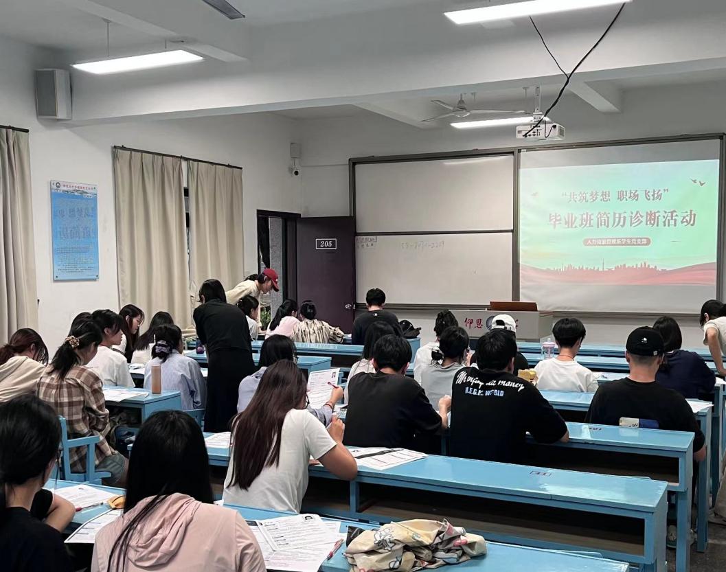 秋招将至,毕业生们纷纷踏上求职之路,而一份优秀的简历往往是他们敲开理想工作大门的“敲门砖”。为积极响应社会需求,提高毕业生的简历质量与水平,人力资源管理系学生党支部于9月23日下午在共和楼205开展了“共筑梦想,职场飞扬”毕业班简历诊断活动。