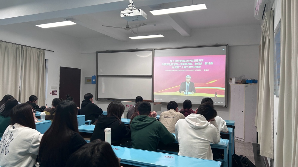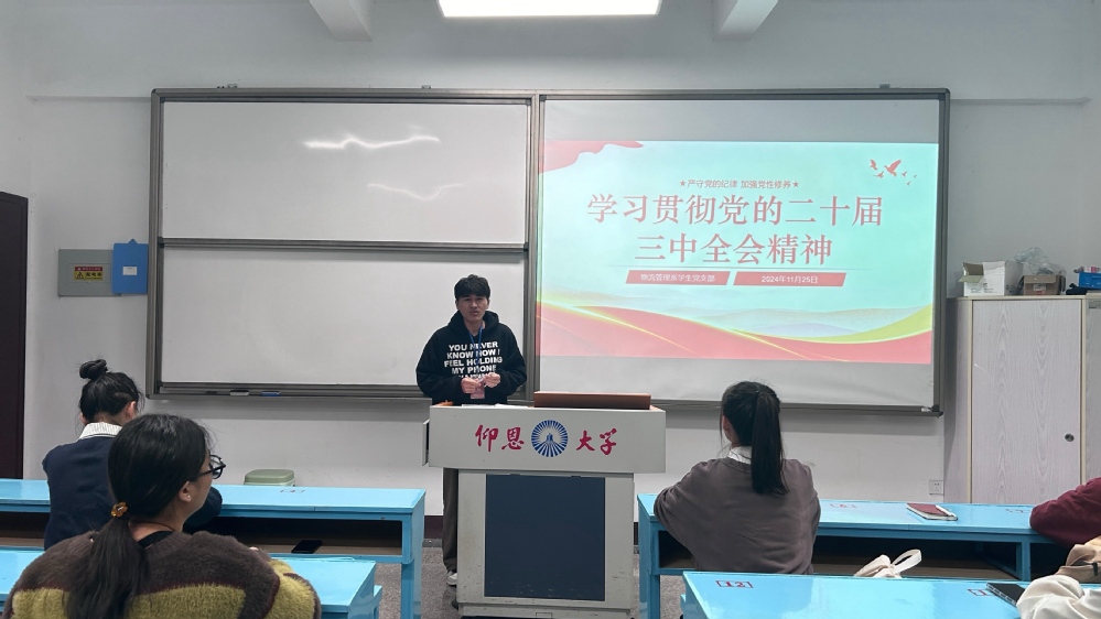 为深入学习贯彻党的二十届三中全会精神,引导党员同志认真学习全会精神。2024年11月25日,Beat365唯一官方网站物流管理系学生党支部在共和楼208教室开展了“学习贯彻党的二十届三中全会精神”主题党日活动,本次活动由支部书记林有桂老师主持,支部教师党员列席、全体学生党员同志参加。